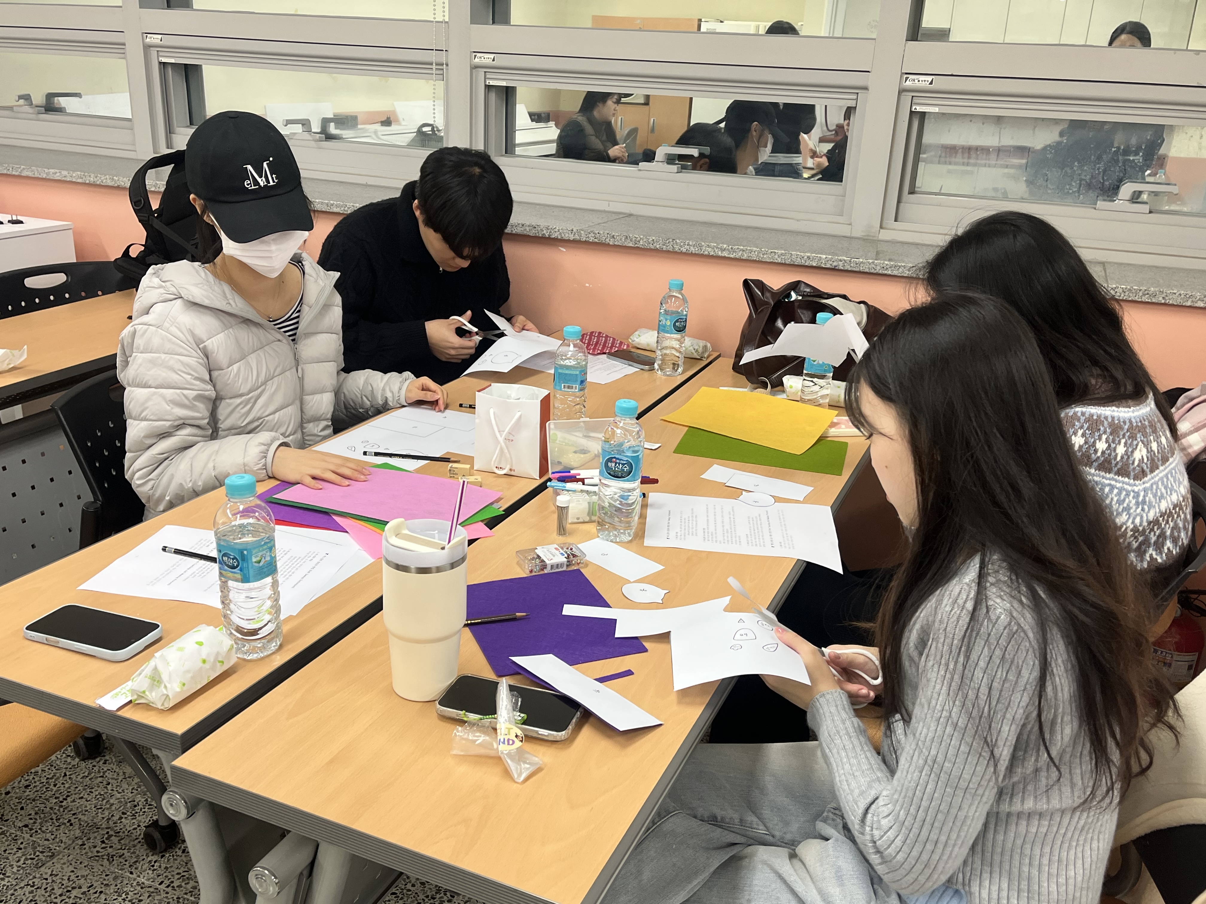 아동학과에서는 2025학년도 현장 실무 대비 공예 특강을 진행하였습니다. 이번 특강은 보육현장에서 필요한 공예 역량을 강화하고, 다양한 재료와 도구의 활용 능력을 기르기 위해 마련되었습니다. 특강은 총 2팀으로 나누어 진행되었으며, A팀은 펠트공예를 주제로 펠트의 사용법을 익히고 기본 바느질법과 도구, 부재료 사용법을 배우며 환경 게시판 꾸미기 활동을 진행하였습니다. B팀은 폼아트공예를 주제로 폼아트의 기본 이해와 재료의 성질을 익히고, 기본도구와 재료 사용법을 학습한 뒤 환경 게시판 꾸미기 활동을 체험하였습니다. 참여한 학생들은 직접 공예 활동을 경험하며 현장에서의 적용 방법과 교육적 활용 방안에 대해 생각해볼 수 있는 의미 있는 시간을 가졌습니다. 앞으로도 예비 보육교사들의 전문성 향상을 위한 다양한 실무 중심 특강이 지속적으로 마련될 예정입니다.
