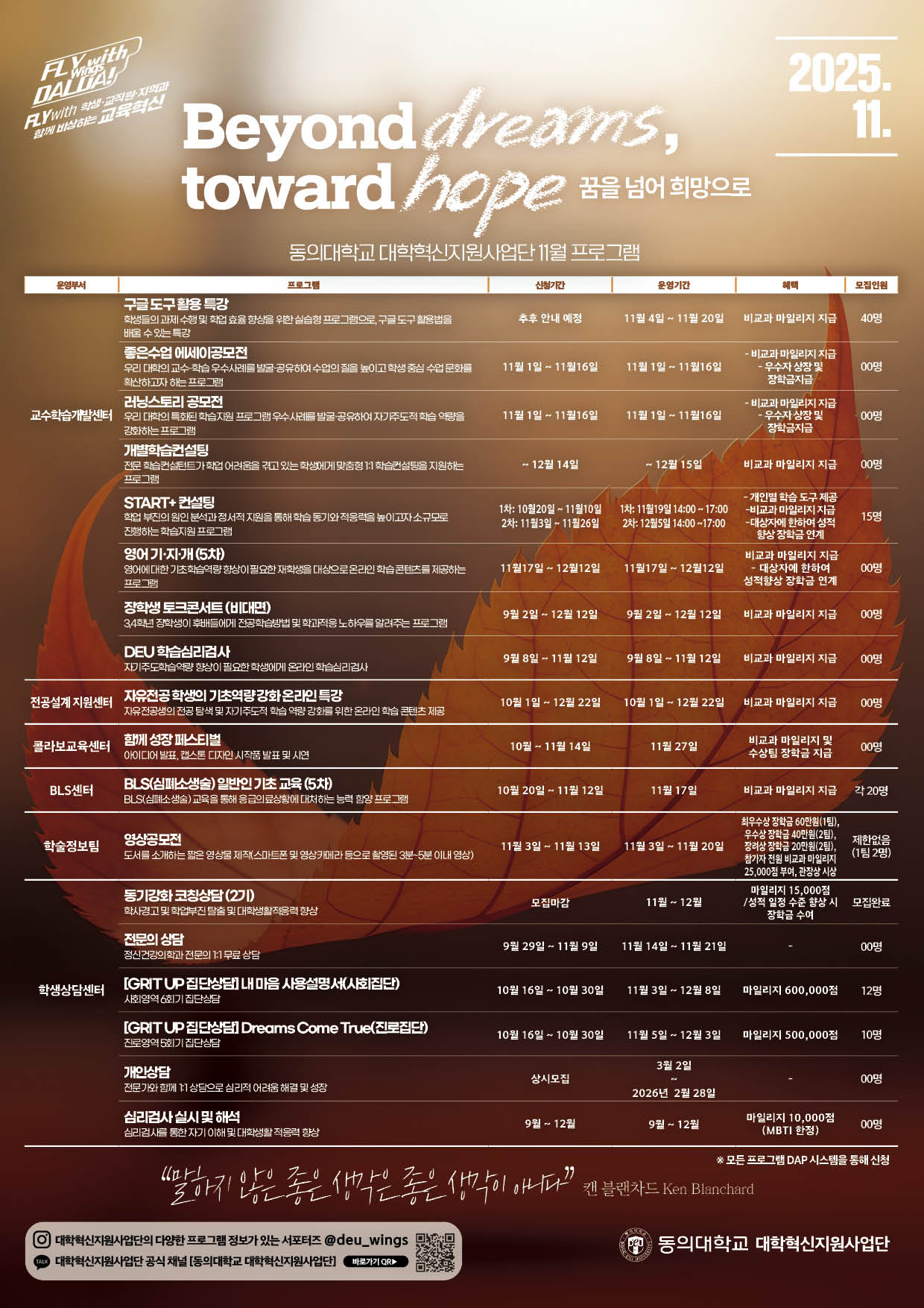 [대학혁신지원사업] 월간 프로그램(11월) 운영 계획표 안내