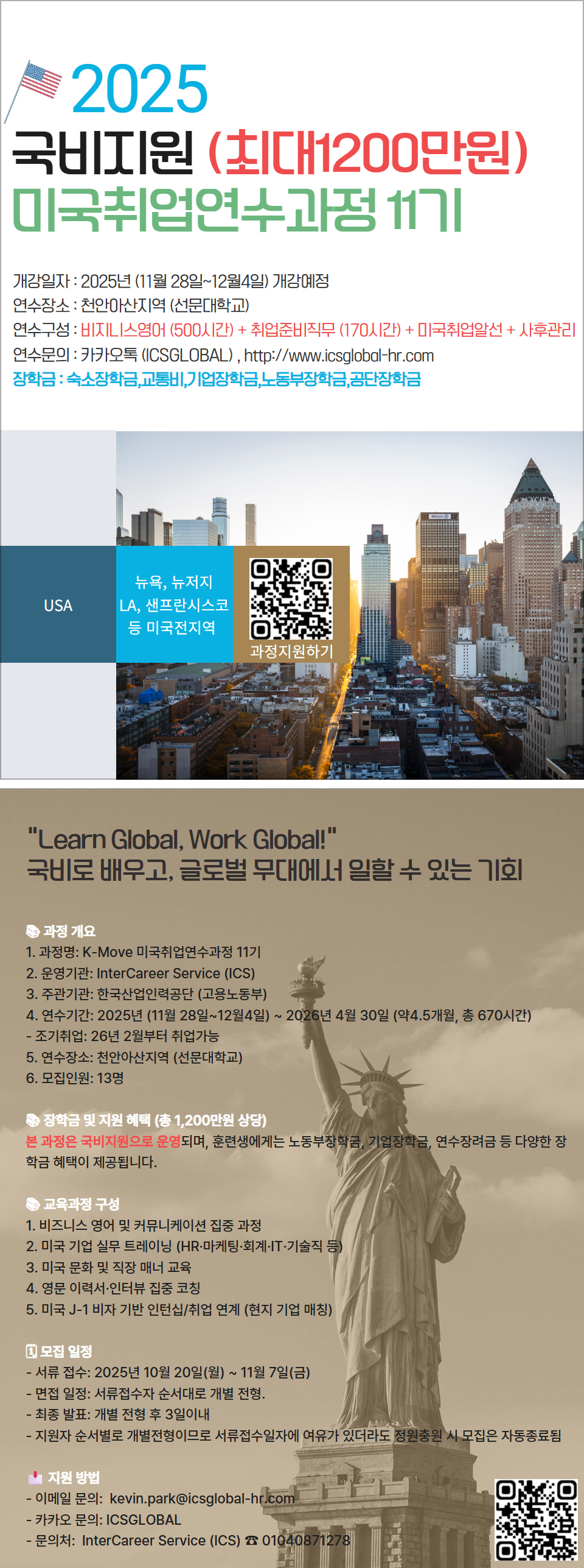 국비지원 미국취업연수과정을 운영 중인 ICS입니다.