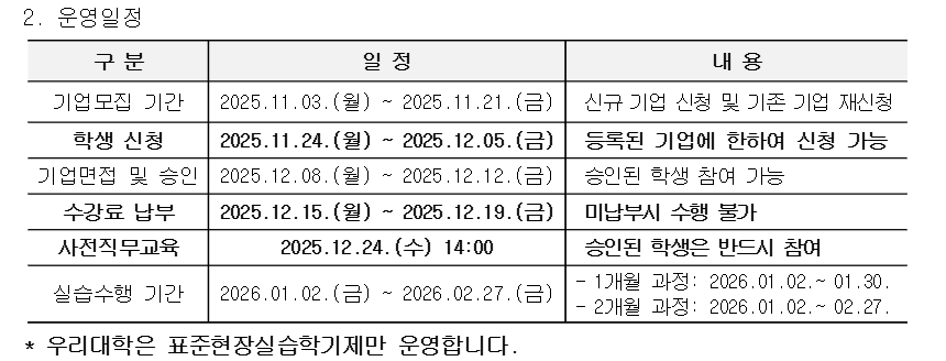 [ 2025학년도 동계 단기 현장실습학기제 실시 안내 ]